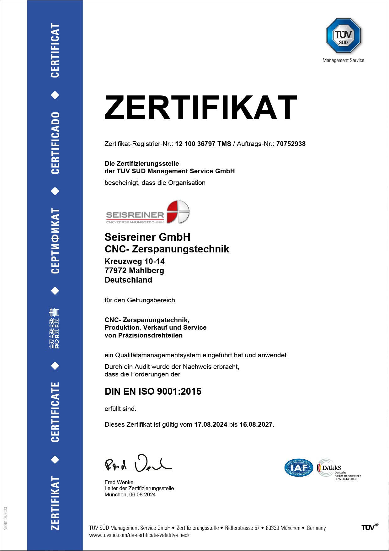 Dabei halten wir uns jederzeit an die zertifizierten Qualitätsmanagement-Prozesse nach DIN EN ISO 9001:2015. Denn erstklassige Qualität ist der Kern unserer Leistungen. Darauf können Sie sich jederzeit verlassen.